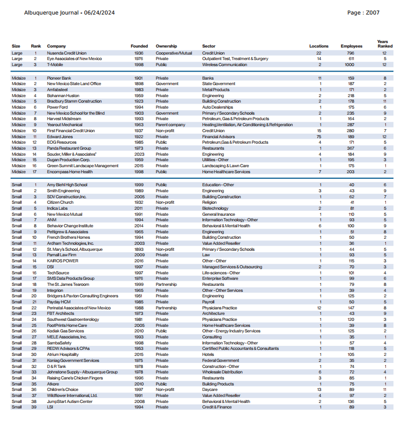 For the sixth year in a row, Amy Biehl was voted a best place to work in New Mexico. Additionally, this year Amy Biehl hit the #1 spot in the small organization category. See the posting and list below for more details.